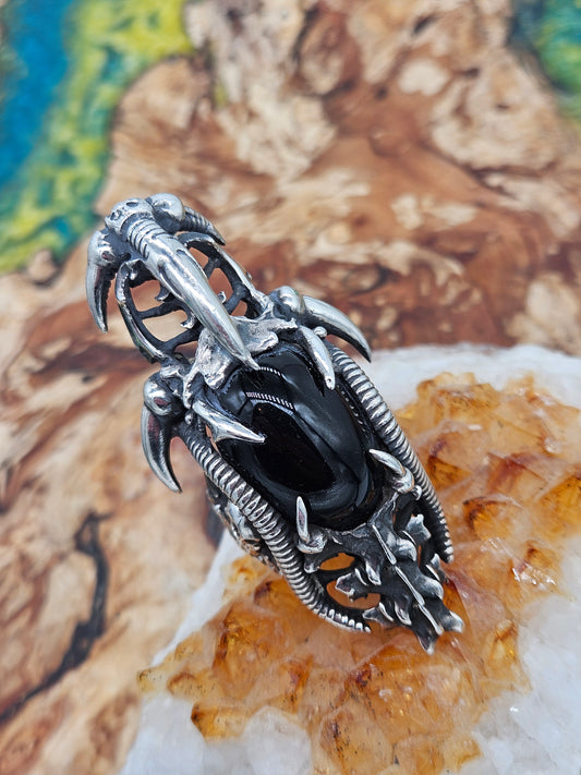 BIOMECHANICAL SILVER 925 CLAW RING. GOTHIC. UK Size T